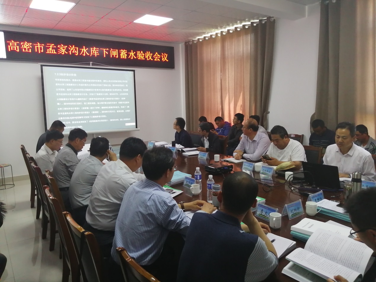 2019年5月21日,潍坊市水利局在孟家沟水库管理局主持召开了高密市孟家沟水库工程下闸蓄水阶段验收会议。工程项目建设相关单位及特邀专家参加了会议。