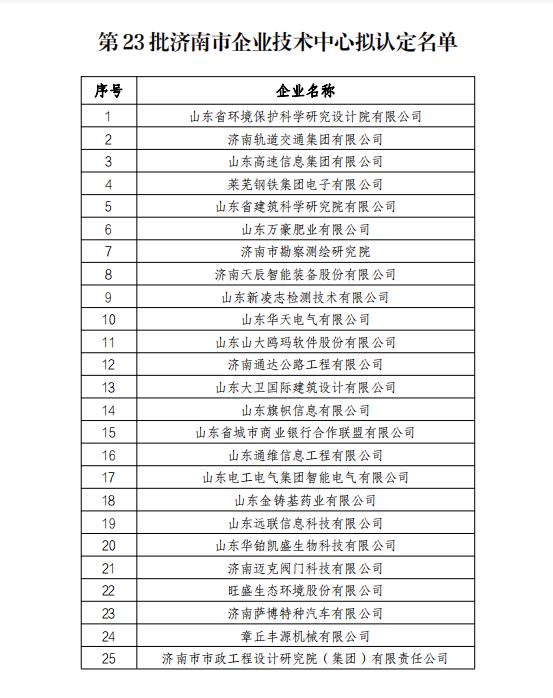 公司顺利通过济南市企业技术中心认定