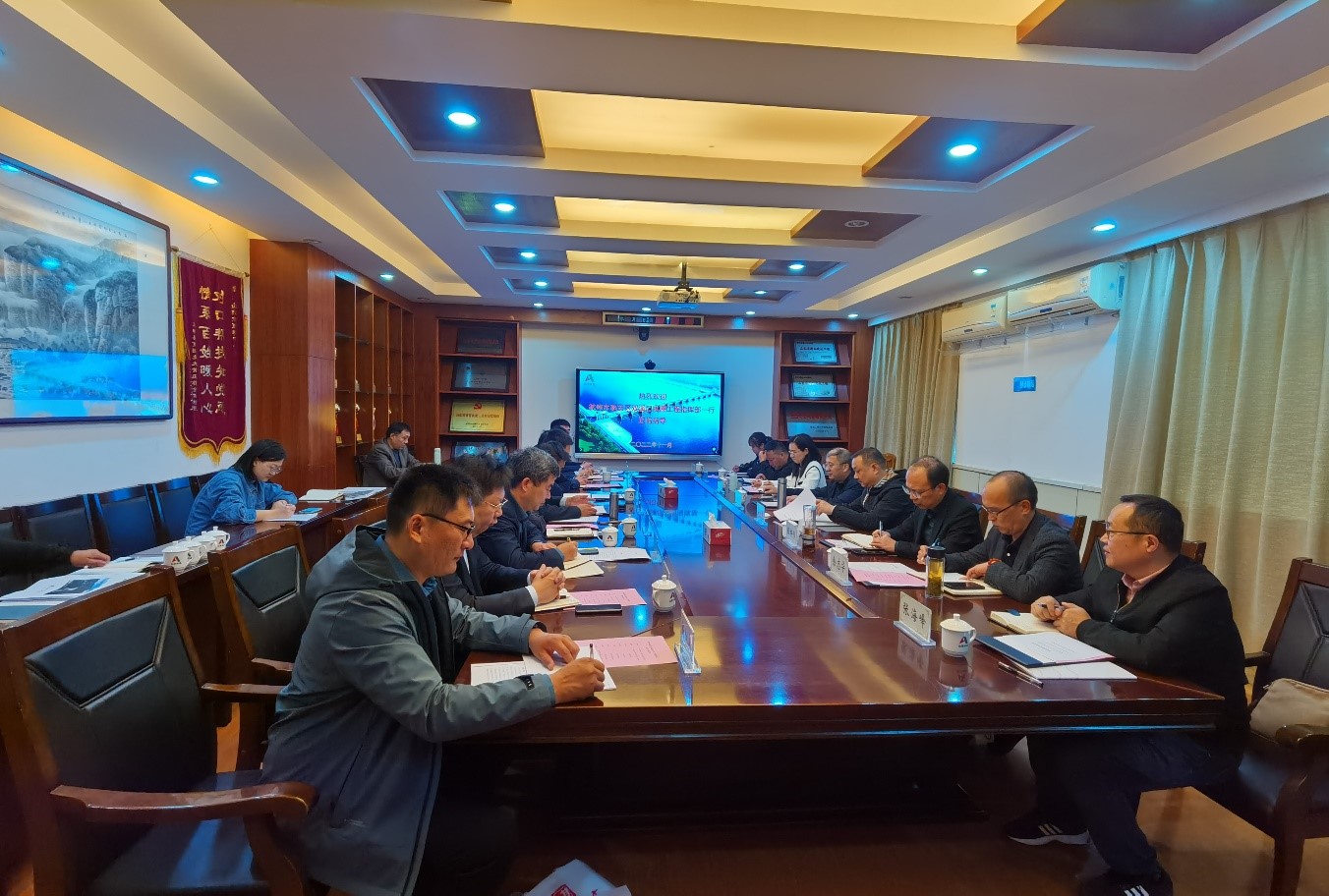 在座谈会上,刘深远首先对刘保法一行的到来表示热烈欢迎,随后介绍了公司的基本情况。孟天琦、杨加良介绍了项目进展情况。刘保法就项目下一步工作提出了要求,并表示指挥部将与水总加强沟通交流,争取在未来有机会开展更多合作。刘深远表示,公司将全力以赴做好项目的保障工作,一是要做好工期统计工作,细化完善项目资料;二是要加快施工进度,通过技术创新、加大投入等方式保障项目进展;三是加大人员投入,通过内部选聘等方式为项目补充专业人才。