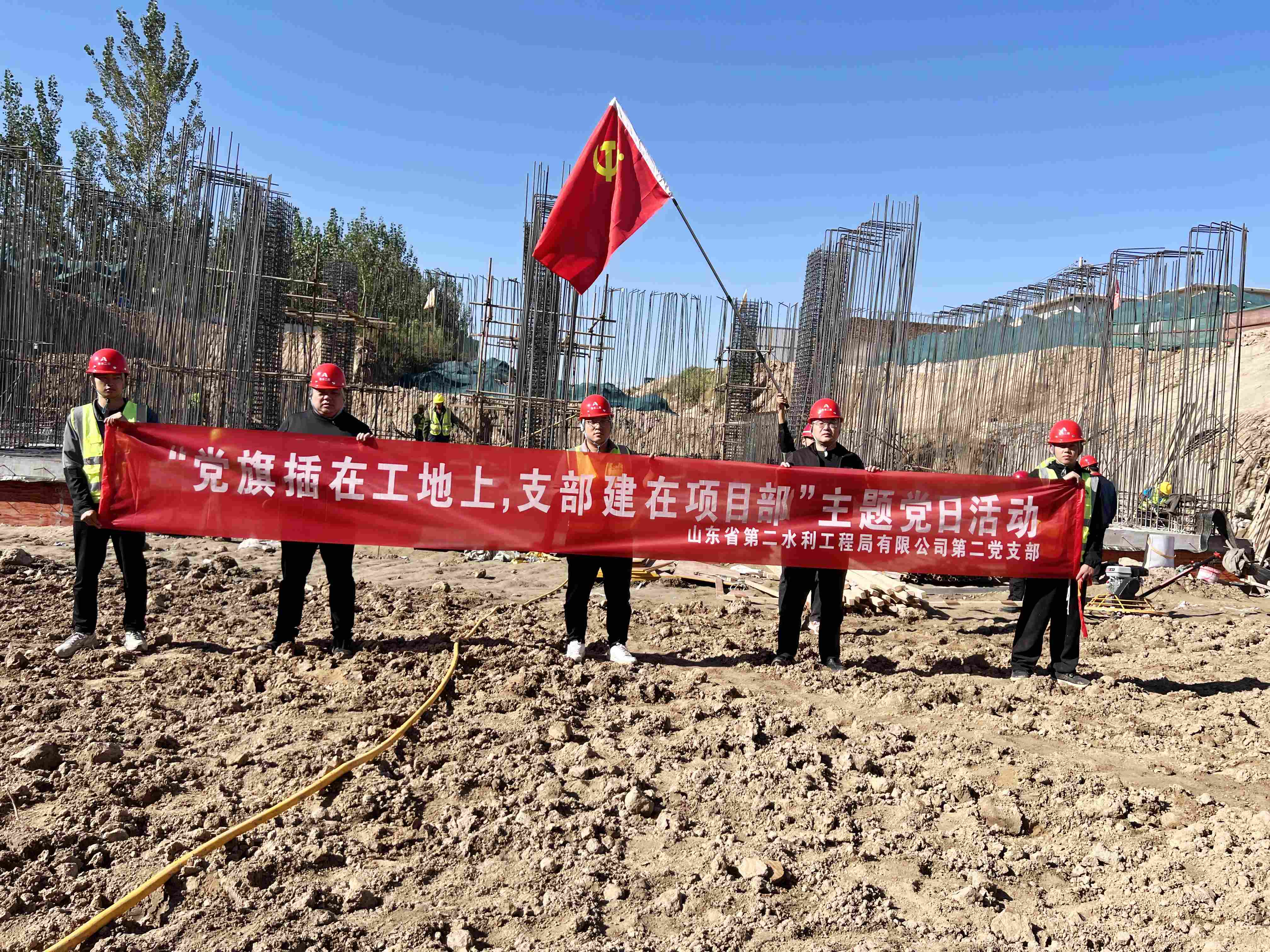 为深入开展“党建进工地”活动,推进党建与业务工作深度融合,近日,二局有限公司第二党支部在聊城市位山灌区项目施工现场组织开展“党旗插在工地上,支部建在项目部”主题党日活动。