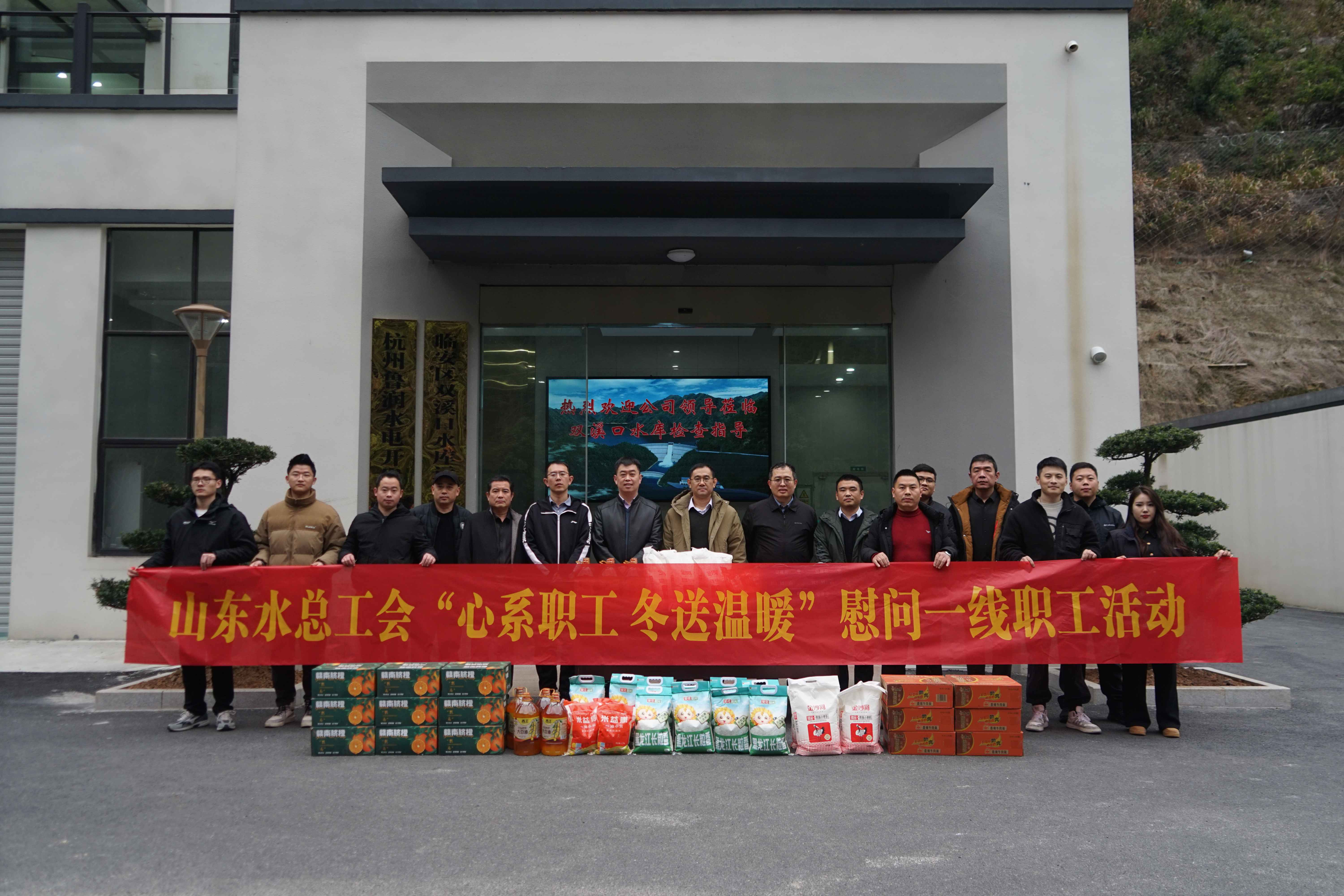 1月14日,公司安全总监郭法文一行莅临杭州鲁润公司临安区双溪口水库项目开展“心系职工 冬送温暖”慰问活动。