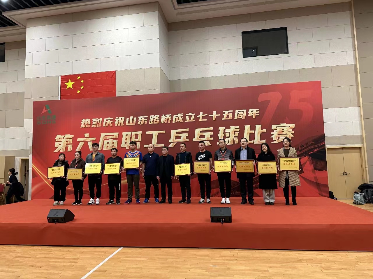 为展现职工良好的精神风貌,11月16日,山东水总组建一支由公司党委委员、副总经理杜贞义等7人组成的乒乓球队,参加路桥股份工会举办的第六届职工乒乓球比赛。